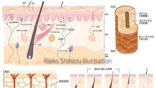 美しさをわかりやすく描く。肌構造などの専門性の高い図解まで幅広く対応。